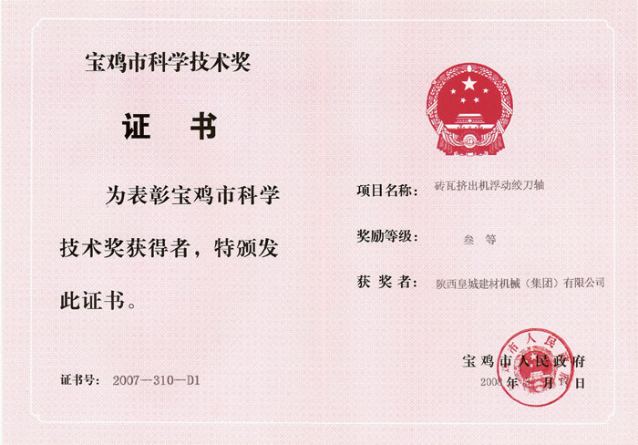 寶雞市科學(xué)技術(shù)獎(jiǎng)